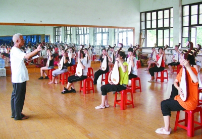 鄧星艾在傳授絲弦技藝 周芳華 攝