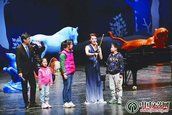 北京國際音樂節(jié)兒童音樂會上,竹笛演奏家唐俊喬與現(xiàn)場小觀眾互動