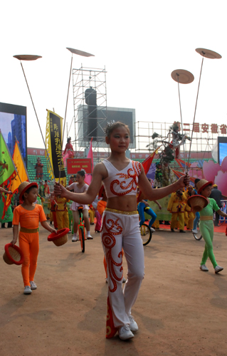 孩子們在表演帽子雜技。(馬祥平 攝)