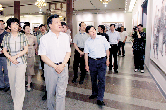 中宣部副部長翟衛華,中國文聯黨組書記趙實,中國文聯黨組副書記、副主席李屹,中國文聯黨組成員、副主席馮遠、廖奔,中國文聯黨組成員、書記處書記夏潮,北京市委常委、宣傳部部長、副市長魯煒,中國文聯副主席、中國美協主席劉大為和中國美協分黨組書記、駐會副主席吳長江,中國攝協分黨組書記、駐會副主席李前光等陪同參觀了展覽。 |