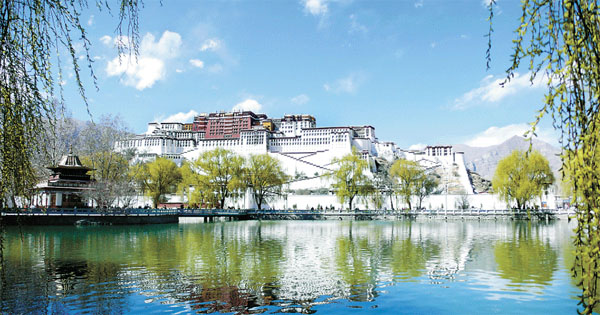 巍峨壯麗的布達(dá)拉宮矗立在拉薩市中心的紅山上,彩色的宮殿上空,白云纏繞,在藍(lán)天映襯下,格外輝煌,作為藏文化的巔峰代表作,它的保護(hù)受到全世界的矚目。