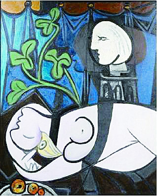 圖為畢加索油畫《裸體、綠葉和半身像》。