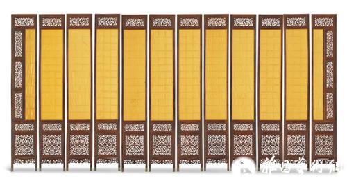 明 黃花梨鏤雕螭龍紋十二扇屏