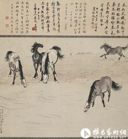 徐悲鴻 五駿圖 設(shè)色紙本 立軸 一九四三年作 74×96cm