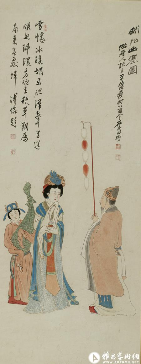 張大千 明妃出塞圖 設(shè)色紙本 鏡框 107×42.5cm