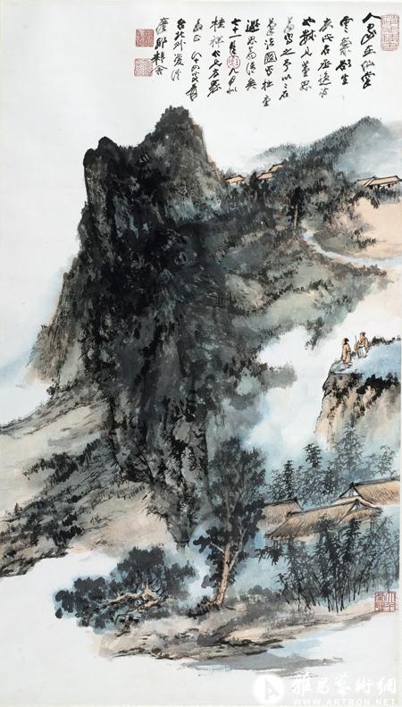 張大千 高士觀云 設(shè)色紙本 鏡框 104.5×59.5cm