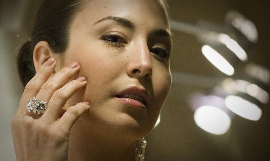 ??? 11月23日,模特展示一枚2.07克拉梨形濃彩藍鉆石及2.33克拉梨形濃彩粉紅鉆石戒指,估價超過1700萬港幣。當日,羅芙奧藝術集團宣布將于11月25日在香港舉行秋季拍賣會,拍賣近190件藝術品,總估價約2億6300萬港幣。(新華社記者 呂小煒 攝)