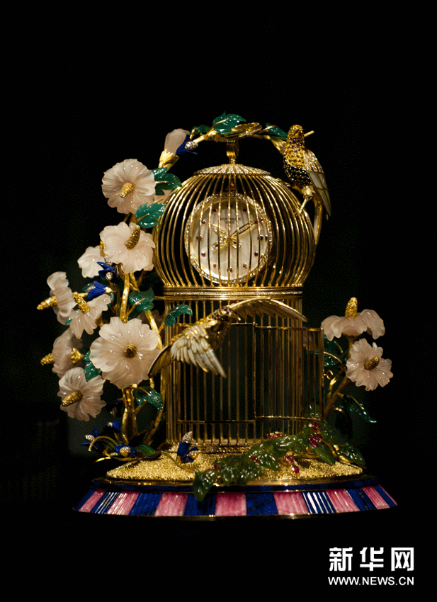 ??? (1)這是百達(dá)翡麗“金絲鳥籠”座臺鐘,估價300萬至500萬港元(2月26日攝)。