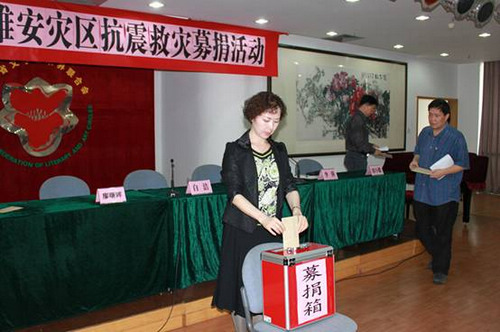 地震無情,人間有愛。“4·20”四川雅安發(fā)生7級地震,災(zāi)情牽動(dòng)著省文聯(lián)全體干部職工的心。4月23日上午,省文聯(lián)召開為雅安地區(qū)抗震救災(zāi)募捐活動(dòng)動(dòng)員會(huì),通報(bào)雅安地震災(zāi)情,發(fā)起捐款動(dòng)員。省文聯(lián)及各直屬單位干部職工積極響應(yīng)號召,踴躍向?yàn)?zāi)區(qū)受難群眾捐款。