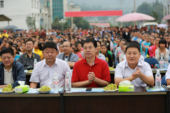 演出結束后,出席演出的領導和藝術家來到大風洞鄉葡萄種植基地考察。據鄉黨委和鄉政府相關負責人介紹,大風洞鄉從實際出發,因地制宜,大規模開展晚熟葡萄種植,帶動相關產業發展,形成優勢品牌,成為當地經濟發展主導產業,改善了當地群眾的生活條件。在聽取情況介紹和觀看相關宣傳資料后,張忠敏、汪信山、徐凡軍、彭治力、張緒晃等對鄉黨委和鄉政府帶領全鄉群眾發展創業的精神和取得的成果高度贊賞,關切地詢問了葡萄的產銷情況,并就當地經濟社會發展提出了意見和建議。參加考察的藝術家們在葡萄種植基地開展了藝術采風,收集創作素材,他們為當地群眾的奮斗精神所感動,表示將把此次慰問演出和采風所收集的素材應用到藝術創作中,創作中更多謳歌自力更生、艱苦奮斗的優秀作品。