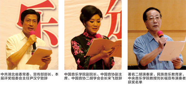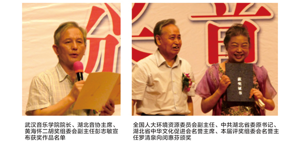 劉健的二胡協(xié)奏曲《三峽敘事》、李博禪的二胡與鋼琴《曾侯乙傳奇》、陳羽霏的二胡獨奏曲《楚風遺韻》、王球的二胡獨奏曲《弦趣》4件獲優(yōu)秀作品獎;著名二胡演奏家閔惠芬編曲的《洪湖主題隨想曲》獲得特別榮譽獎。