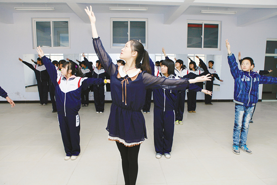 文藝支教志愿者王菲在河北豐寧教孩子跳舞