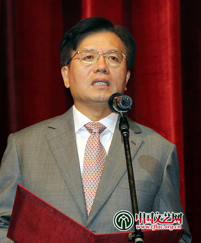 曼谷時間10月30日晚,由中國文聯與中國駐泰國大使館主辦、曼谷中國文化中心承辦,“今日中國”藝術周首場綜合文藝演出在泰國皇家旋宮劇院上演。圖為中國文聯黨組成員、書記處書記李前光致辭。中國文藝網 王春梅 攝