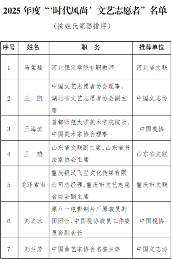 2025年度“‘時(shí)代風(fēng)尚’文藝志愿者”名單發(fā)布