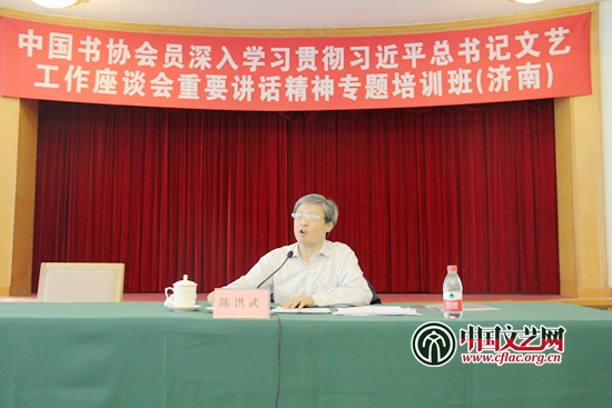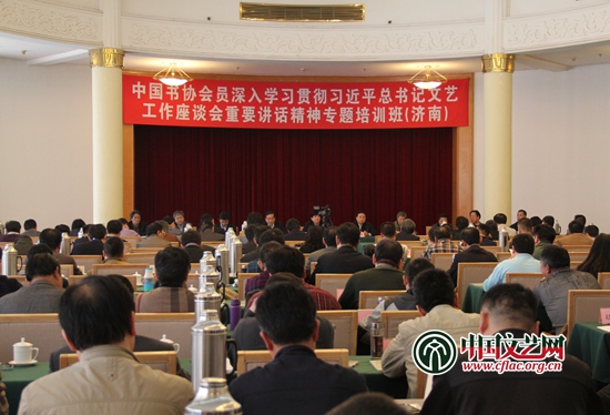 4月12日,中國(guó)書(shū)協(xié)深入學(xué)習(xí)貫徹習(xí)近平總書(shū)記文藝工作座談會(huì)重要講話精神專(zhuān)題培訓(xùn)班在山東濟(jì)南開(kāi)班,拉開(kāi)了中國(guó)書(shū)協(xié)會(huì)員培訓(xùn)的大幕。此次培訓(xùn)班是按照中央統(tǒng)一部署,貫徹落實(shí)中宣部、中國(guó)文聯(lián)等聯(lián)合印發(fā)的《2016 - 2017年全國(guó)文藝骨干和管理干部培訓(xùn)工作規(guī)劃》的要求和《中國(guó)文聯(lián)關(guān)于各全國(guó)文藝家協(xié)會(huì)會(huì)員培訓(xùn)實(shí)施方案》 、中國(guó)文聯(lián)九屆八次全委會(huì)工作部署的重要舉措,旨在引導(dǎo)廣大書(shū)法家和書(shū)法工作者深刻領(lǐng)會(huì)黨中央關(guān)于文藝工作和文聯(lián)工作的重要指示精神,充分認(rèn)識(shí)新時(shí)期書(shū)法工作的歷史定位、重要意義、面臨形勢(shì)、獨(dú)特優(yōu)勢(shì)和任務(wù)挑戰(zhàn),做到學(xué)深講話原文、領(lǐng)會(huì)講話原義、悟透講話原理,提升推動(dòng)書(shū)法事業(yè)發(fā)展的政治自覺(jué)、思想自覺(jué)和行動(dòng)自覺(jué)。