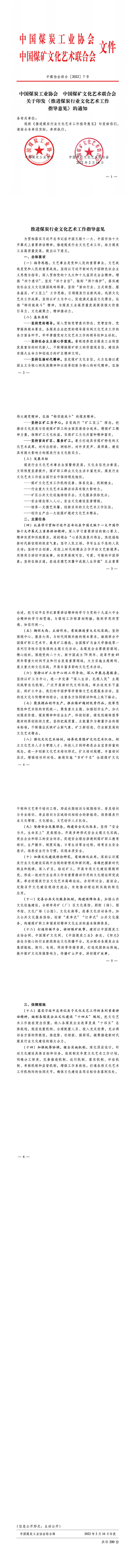 中國煤炭工業協會 中國煤礦文化藝術聯合會 關于印發《推進煤炭行業文化藝術工作指導意見》的通知