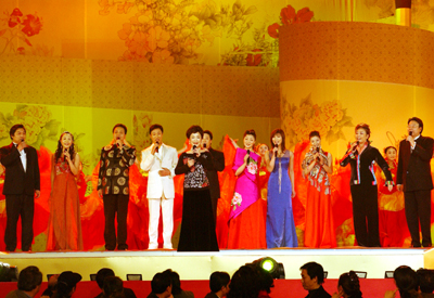中國文聯網訊:由中國文聯主辦的“百花迎春———中國文學藝術界2004年春節大聯歡”將于今晚在中央電視臺第3套節目亮相。 大聯歡由歌唱家彭麗媛的《百花迎春》主題歌拉開序幕。主持人趙忠祥、黃宏、沈冰、闞麗君代表中國戲劇、電影、音樂、美術、雜技、電視等11家協會向全國人民敬獻春聯。 湯燦和李丹陽演唱的《洪湖水浪打浪》,讓王玉珍回憶起當年周總理喜歡此歌的情景;田震的《康定情歌》,增加了許多流行的元素;韓紅與母親雍西合作演唱了《翻身農奴把歌唱》,讓人感受到暖暖的親情。宋祖英的一曲《茉莉花》,濃郁芬芳撲面而來。 這臺聯歡會由覃志剛擔任總體設計,郁鈞劍擔任總策劃,王潮歌擔任總導演,周曉冬擔任電視導演。(欣 春)