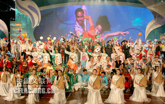 10月12日,第八屆中國國際民間藝術(shù)節(jié)頒獎典禮暨中外藝術(shù)家大聯(lián)歡在蘇州市相城區(qū)體育藝術(shù)館舉行。圖為晚會現(xiàn)場。中國文聯(lián)網(wǎng) 孟祥寧 攝