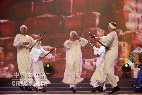 10月12日,第八屆中國國際民間藝術(shù)節(jié)頒獎典禮暨中外藝術(shù)家大聯(lián)歡在蘇州市相城區(qū)體育藝術(shù)館舉行。圖為埃及拜尼斯維夫民間舞團為觀眾演出埃及民樂。中國文聯(lián)網(wǎng) 孟祥寧 攝