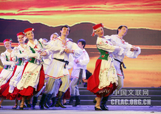 10月12日,第八屆中國國際民間藝術(shù)節(jié)頒獎典禮暨中外藝術(shù)家大聯(lián)歡在蘇州市相城區(qū)體育藝術(shù)館舉行。圖為白俄羅斯國家舞蹈團演出《利亞沃妮赫》。中國文聯(lián)網(wǎng) 孟祥寧 攝