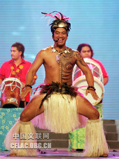 10月12日,第八屆中國國際民間藝術(shù)節(jié)頒獎典禮暨中外藝術(shù)家大聯(lián)歡在蘇州市相城區(qū)體育藝術(shù)館舉行。圖為庫克群島啟明星舞蹈團演出草裙舞。中國文聯(lián)網(wǎng) 孟祥寧 攝