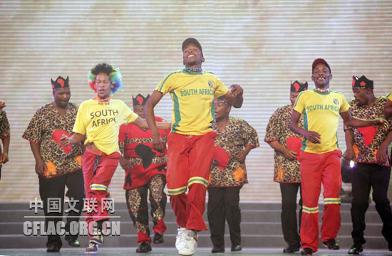 10月12日,第八屆中國國際民間藝術(shù)節(jié)頒獎典禮暨中外藝術(shù)家大聯(lián)歡在蘇州市相城區(qū)體育藝術(shù)館舉行。圖為南非文化藝術(shù)團演出精彩非洲舞蹈。中國文聯(lián)網(wǎng) 孟祥寧 攝