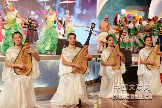 10月12日,第八屆中國國際民間藝術(shù)節(jié)頒獎典禮暨中外藝術(shù)家大聯(lián)歡在蘇州市相城區(qū)體育藝術(shù)館舉行。圖為中國(蘇州)藝術(shù)團演奏評彈。中國文聯(lián)網(wǎng) 孟祥寧 攝