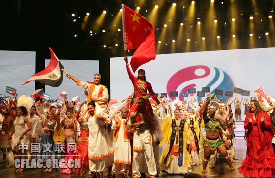 閉幕式演出在開場節目《鼓舞歡歌》所營造的喜慶祥和的熱烈氛圍中展開。隨后,各國藝術家一 一登臺亮相,為觀眾表演了他們的拿手好戲。埃及拜尼斯維夫民間舞團的《甜蜜的椰棗》傳遞著男子對女子的愛慕之情;美國動力街舞團的少男少女們通過爆發力強、節奏激越、自由隨意且極富個性的街舞《隨心所動》,彰顯著他們的青春活力;伴著笛聲,舞起歡快的舞蹈,捷克維薩坎民間舞團的《快樂的牧羊人》再現了閑暇之時牧羊人的聚會;庫克群島啟明星舞蹈團的《草裙舞》感悟著生命和自然的律動;身穿瑰麗的華服,踏著舒緩的音樂,韓國田銀子舞蹈團的姑娘們展現了與打擊樂器“拍”完美結合的傳統舞蹈《雅樂》;西班牙喬尼弗拉明戈舞團將弗拉明戈舞和現代舞融合在一起的《過客》,試圖用全新的視覺語言表達對時間與生命的復雜感受;古巴拉卡坦舞蹈團的舞者們用熱情奔放、動感十足的《薩爾薩》自由地宣泄著情感;巴西北大河州聯邦大學民間舞團的《桑巴與肖特》用幽默的動作反映了人們歡度節日時的美好心情;南非文化藝術團演唱的中文歌曲《半個月亮爬上來》抒情、動人,尤其是和聲別有一番韻味,而該團帶來的《祖魯舞》則用令人振奮、富于節奏感的舞蹈抒發著歡慶豐收和勝利的喜悅;中國蘇州藝術團以中國民族樂曲《茉莉花》為主題的大型舞蹈《華彩神韻》將轉動的花傘、揮舞的彩綢和典雅的昆曲、舒緩的評彈融為一體,透過滿臺的清麗,演繹了溫婉柔美的江南情韻;英國蘇格蘭戈登舞蹈學校藝術團的《勇敢的蘇格蘭》用蕩氣回腸的風笛樂曲讓人聯想起蘇格蘭人的無畏與堅韌;土耳其促進基金會舞蹈團的《黑海情》表達了人們勇敢面對生活的樂觀精神;阿根廷卡圖盧斯探戈舞團的《永遠的探戈》華麗高雅、熱烈狂放、變化無窮,給人以無限的激情和想象力;白俄羅斯國家舞蹈團的《利亞沃妮赫》活潑、輕松,描繪了大家興高采烈、歡聚一堂的情景。精彩的演出受到觀眾的極大歡迎,每每有高難度表演都會引來掌聲陣陣;各國主持人的趣味“漢語秀”更是讓觀眾捧腹不已。最終,在《遠方的客人請你留下來》的音樂聲中,中外藝術家向觀眾們依依不舍地道別。