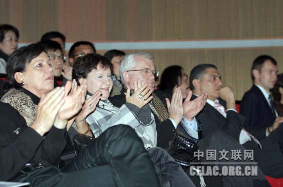 10月17日晚,由中國文聯和江蘇省人民政府主辦,蘇州市人民政府、江蘇省文化廳、江蘇省文聯承辦的第八屆中國國際民間藝術節在京落下帷幕。圖為外國使節觀看演出。中國文聯網 余寧 攝