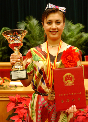 舞蹈代表作有《盤子舞》、《阿圖什》、《摘葡萄》、《新疆姑娘》、《冰山之火》、《心愿》、《達坂城的姑娘》等。曾獲全國少數民族舞蹈比賽一等獎,文化部“文華表演獎”,日本大阪國際藝術節“最高表演獎”,香港回歸大型晚會“金獎”,朝鮮“四月之春”國際藝術節金獎。
