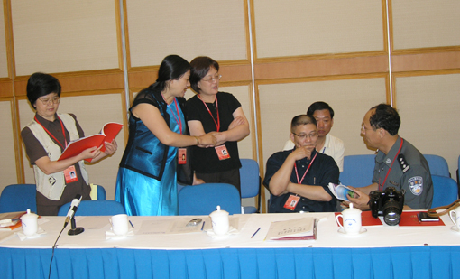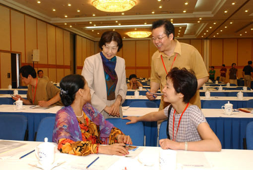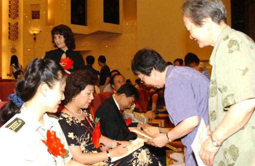吉炳軒、李樹文、覃志剛、仲呈祥等與張魯交談。