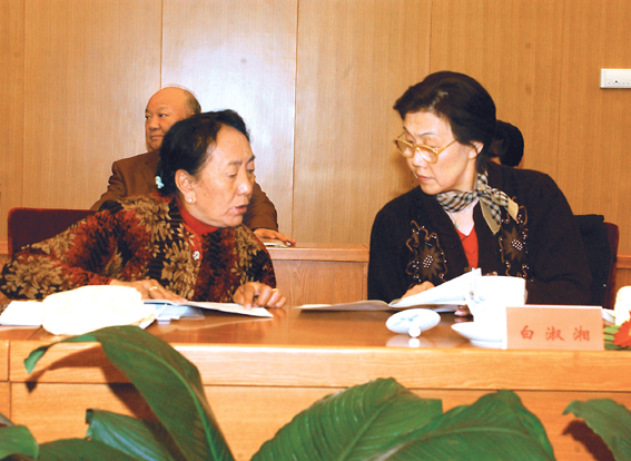 才旦卓瑪(左)和白淑湘在交流會議報告。
