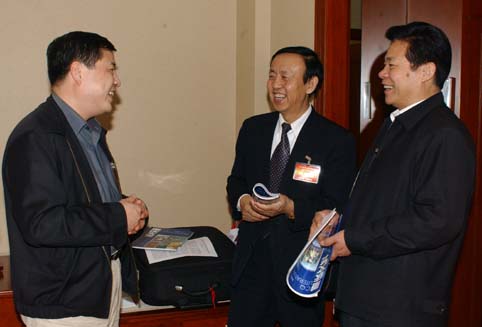 關牧村(左)與殷秀梅殷(右)親切交談。