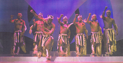 來自南非的黑人合唱組合,把遙遠(yuǎn)的非洲歌舞帶到中國。由清一色男性黑人組成的“黑色旋風(fēng)”合唱組,用他們動聽的歌喉和富有非洲風(fēng)格的旋律及美妙和聲,為觀眾展現(xiàn)了一幅活力四射的非洲風(fēng)情圖。