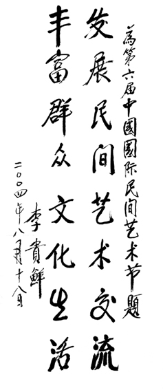 李貴鮮為第六屆中國國際民間藝術(shù)節(jié)題詞