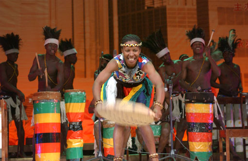 10月17日晚,津巴布韋藝術家在山西晉中演出。